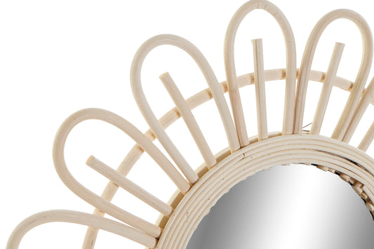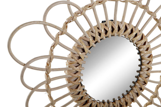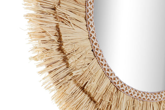 Espejo Redondo de 68 cm con Marco de Fibras Naturales – Estilo Bohemio