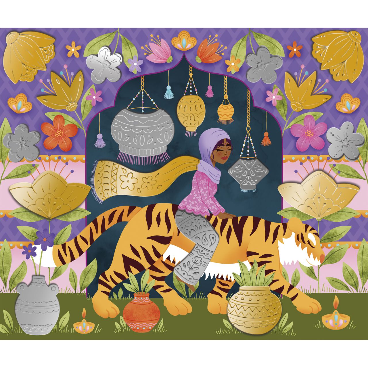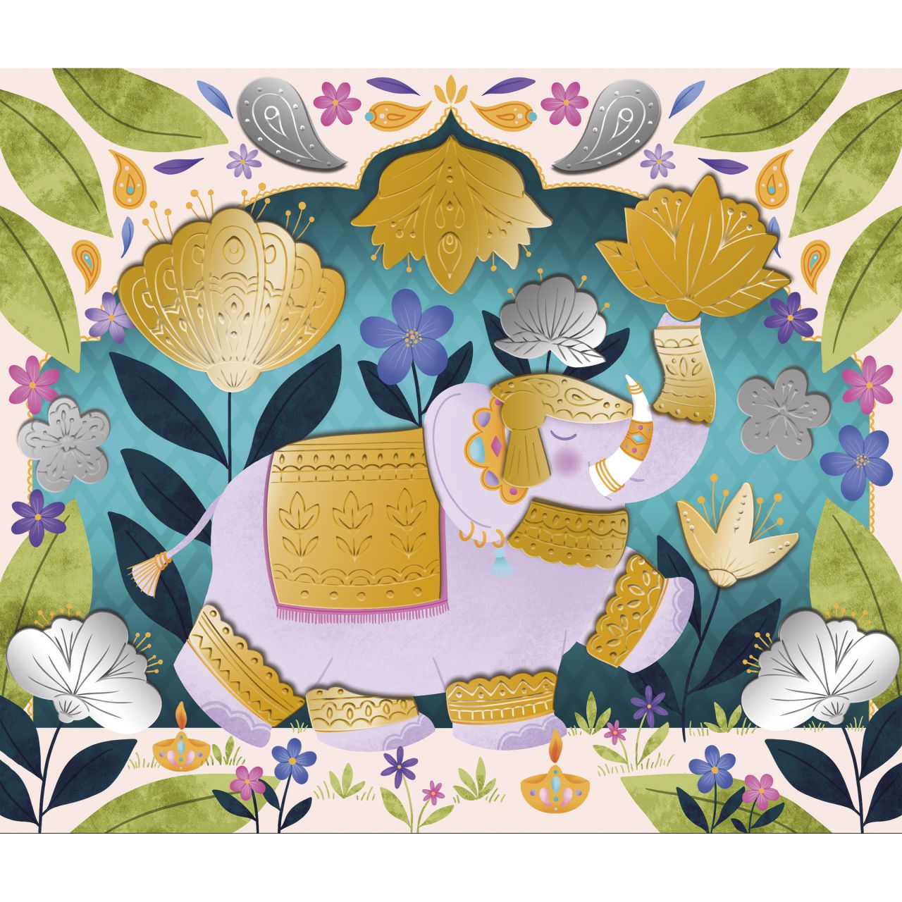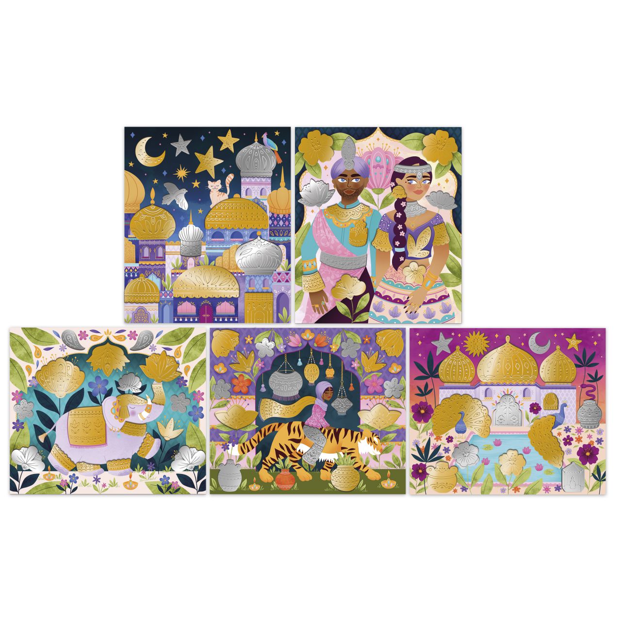 Sumérgete en el vibrante mundo de Bollywood con este divertido kit creativo. Decora 5 espectaculares cuadros con pegatinas metalizadas doradas y plateadas utilizando una técnica súper sencilla: ¡solo repasa, adhiere y listo! Perfecto para pequeños artistas desde 7 años que quieran desarrollar paciencia y creatividad mientras disfrutan de un viaje imaginario a la India. ¡Cada obra maestra solo requiere 25 minutos de diversión!