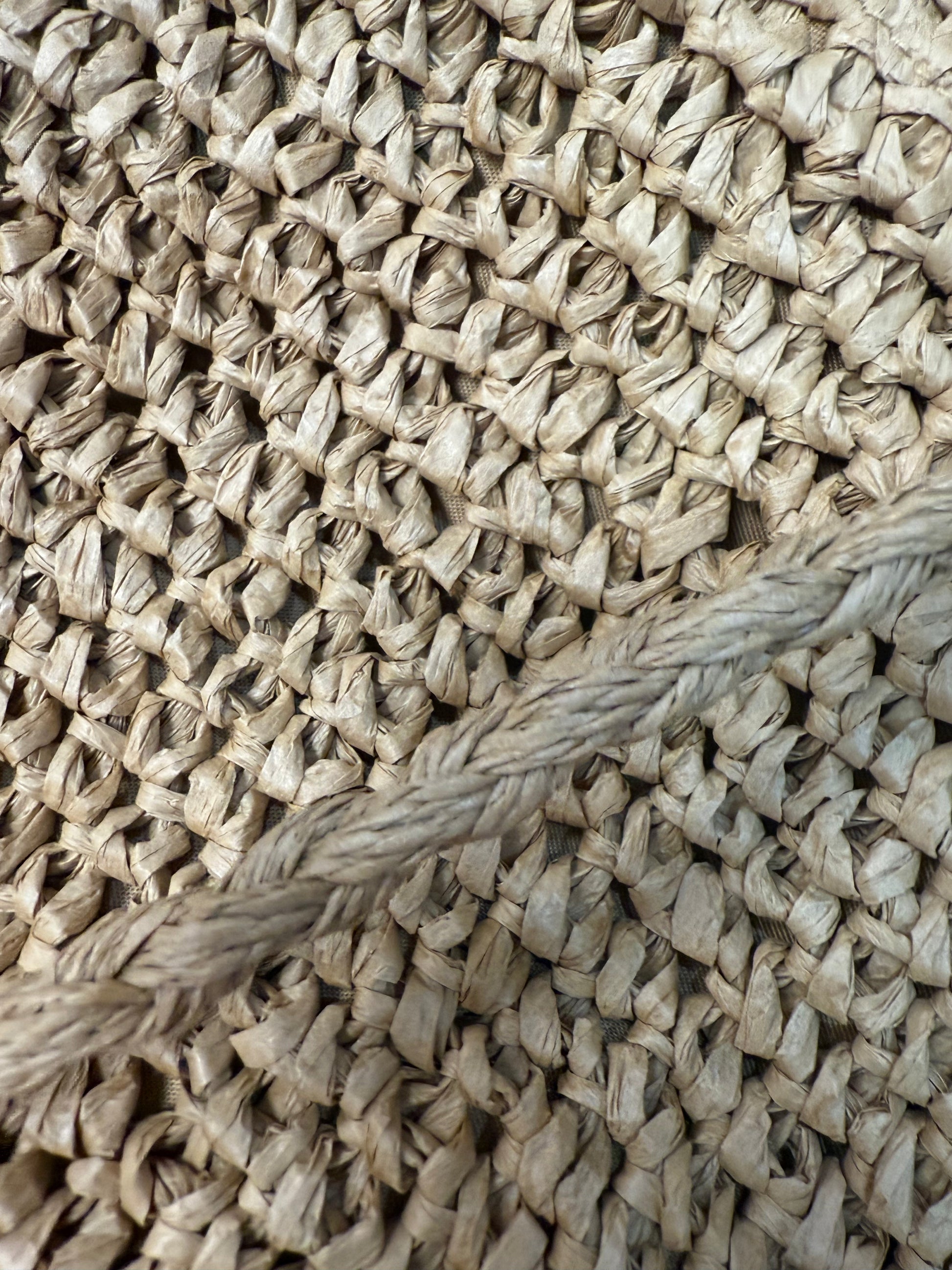 - Asa trenzada del mismo material, cómoda y con un toque artesanal.