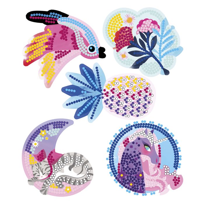 Transforma tu espacio con estas 5 decoraciones adhesivas que podrás personalizar con 1500 estrás minis brillantes y 5 cintas incluidas. ¡Un juego creativo de cartón que fomenta la concentración y tranquilidad en niños desde 7 años! Cada pieza de ESTRÁS PIXEL BONITAS DECORACIONES invita a crear diseños únicos mientras se disfruta de una actividad relajante y artística. ¡Dale rienda suelta a la imaginación y decora con estilo!