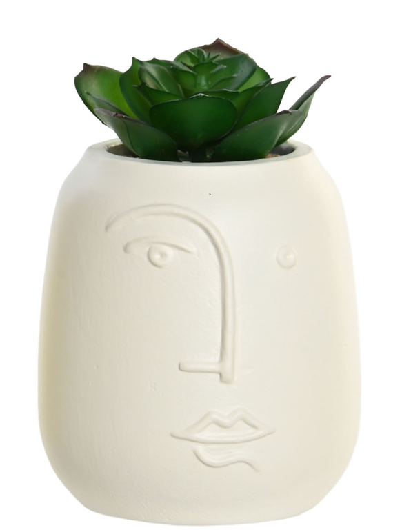La Planta Suculenta es una pequeña planta con una moderna maceta de cemento en forma de cara. Disponible en 2 modelos, es ideal para alegrar espacios pequeños con estilo contemporáneo. Utiliza un diseño único que combina la belleza natural con las modernas formas de la arquitectura.