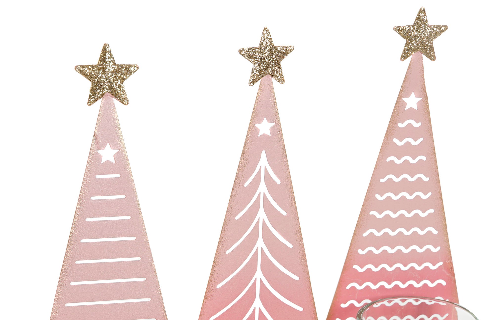 ✨ Añade un toque delicado y festivo a tu hogar con este encantador portavelas navideño con diseño de árbol rosa y estrella dorada. Su estilo combina metal decorado con base de madera envejecida, creando una pieza cálida, elegante y perfecta para la temporada.