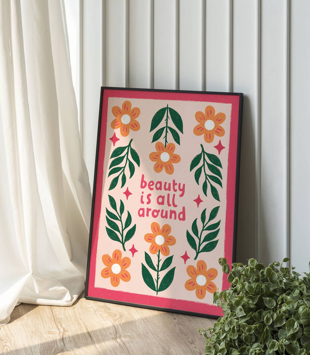 «La belleza está en todas partes» es una ilustración con una cita positiva dibujada por mí que sin duda alegrará tu hogar.