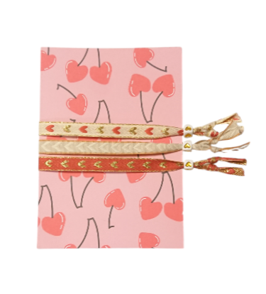 Set 3 Pulseras Cinta de Texto Tarjeta Corazón de Cereza
