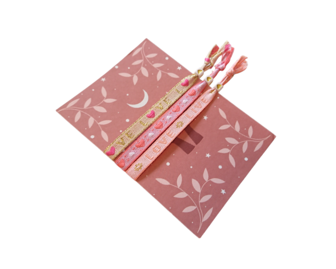 Set 3 Pulseras Cinta de texto Vive, Rie, Ama mas Tarjeta