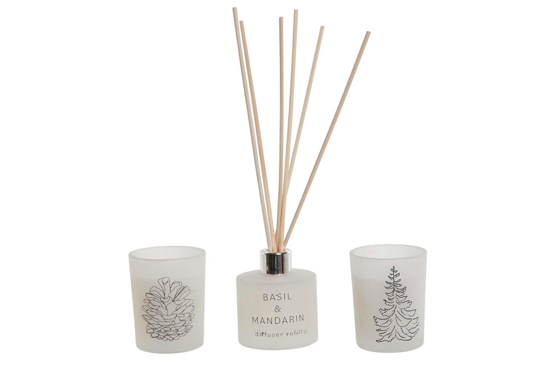 Set de Velas Aromáticas y Difusor "Hello Winter" Basil & Mandarina - Pack Decorativo Invierno con Vela y Difusor de Fragancia