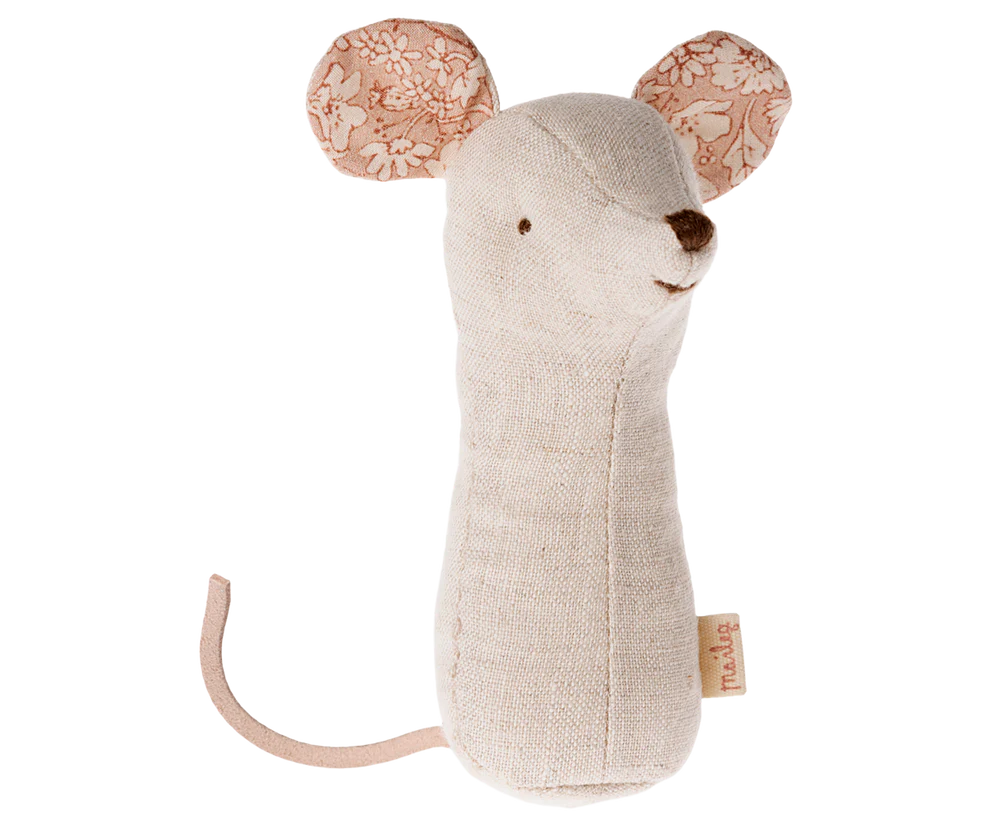 Este adorable sonajero de ratón transportará a tu pequeño al mundo de la naturaleza mientras desarrolla sus sentidos. Con su tamaño perfecto para manitas curiosas, emite un suave tintineo que cautivará la atención de tu bebé. Confeccionado con telas ultra suaves y estampados naturales únicos, es el compañero ideal para los primeros descubrimientos. ¡Llega en una preciosa caja lista para regalar!