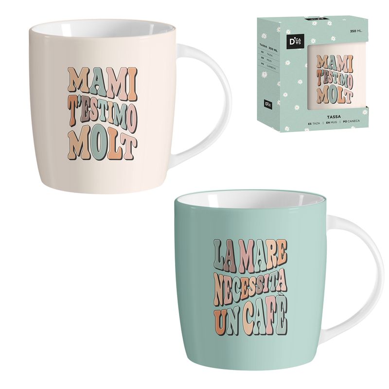 Taza 350 ml para Mamá en catalán . Tazas con mensajes divertidos y cariñosos para madres. Diseño moderno en colores pastel. Regalos ideales para mamás.