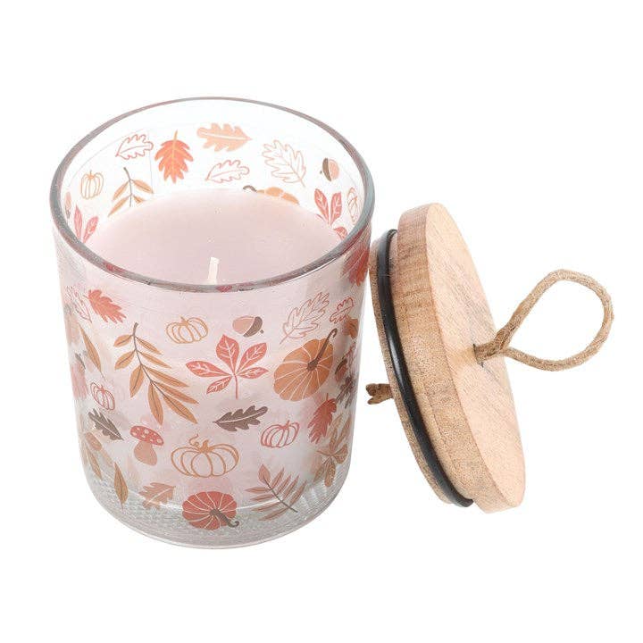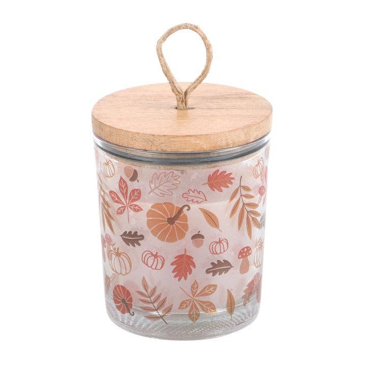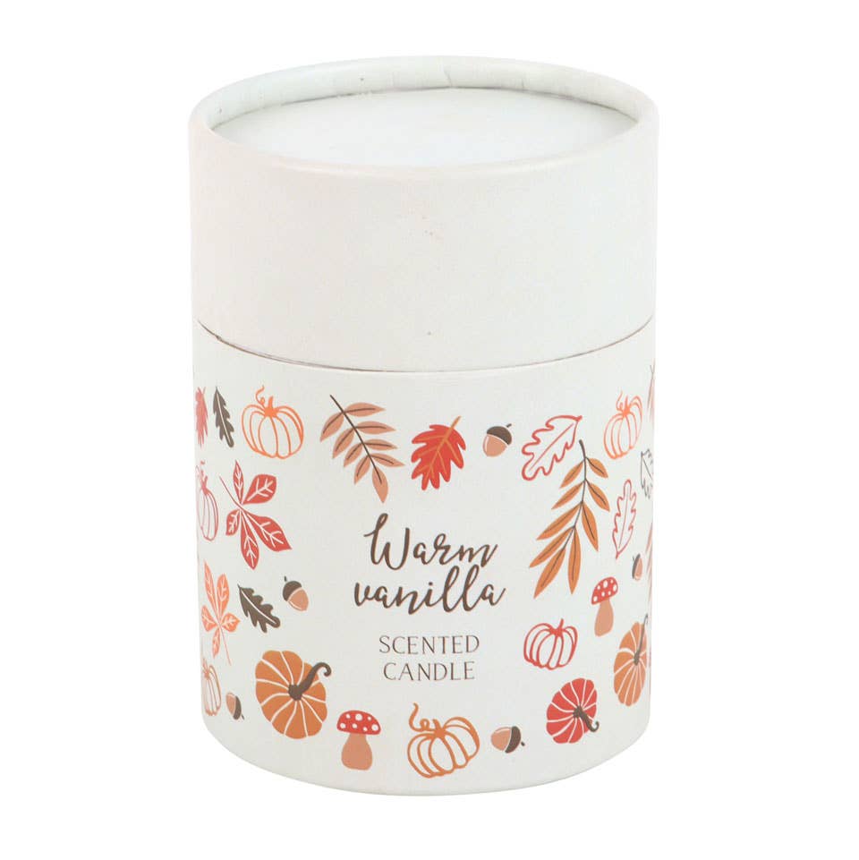 Haz que el próximo día frío de otoño sea más dulce con esta vela aromática de vainilla cálida. Acentuada con un bonito estampado de hojas y calabazas otoñales, una tapa de madera y empaquetada en una caja cilíndrica a juego, esta vela es un gran regalo para celebrar el cambio de estación. Cera de parafina vegana. Tiempo total de combustión de 30 horas. No deje la vela encendida sin supervisión ni la queme durante más de 4 horas seguidas.