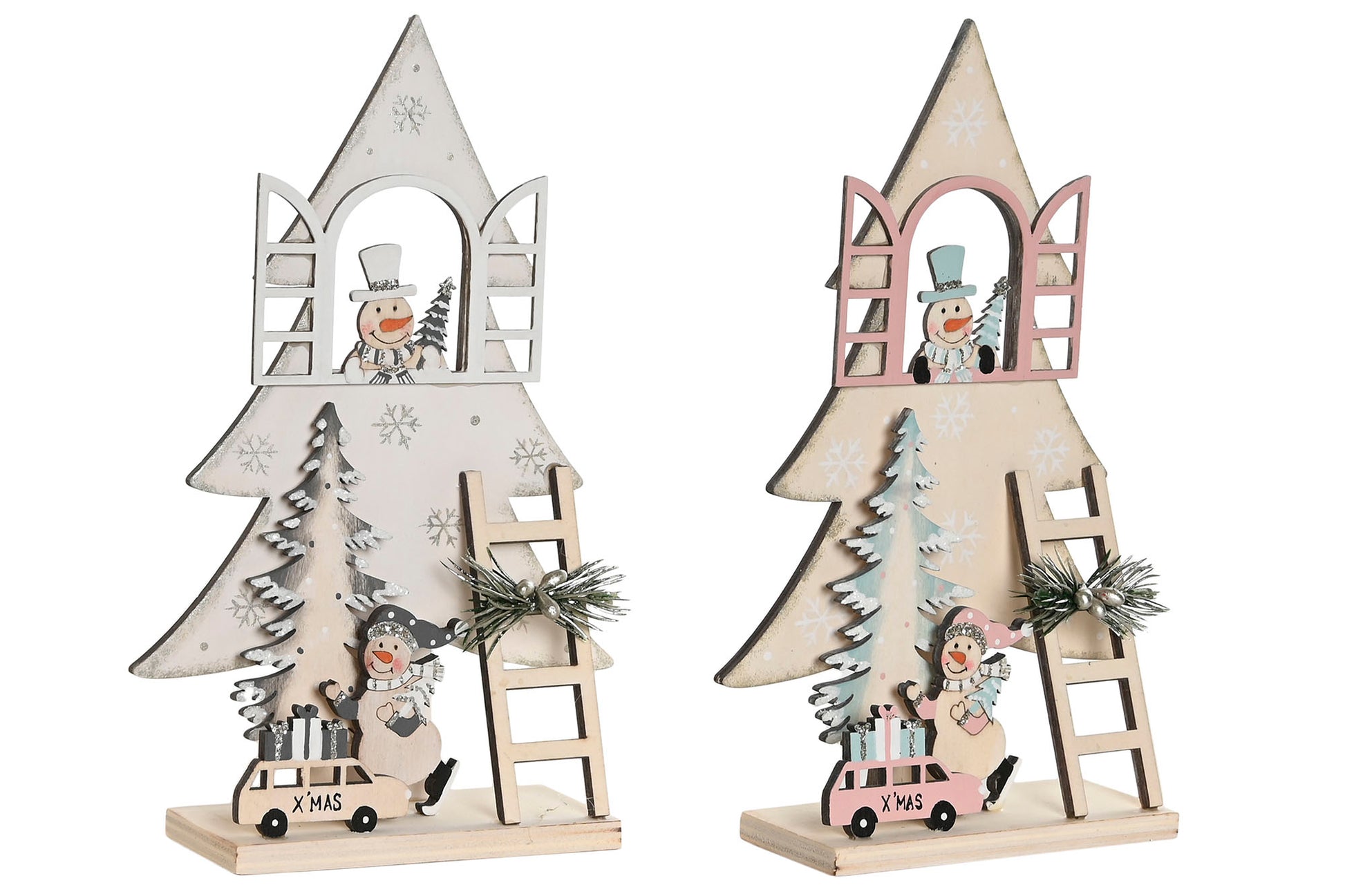Figura Navideña de Madera con Muñeco de Nieve y Árbol